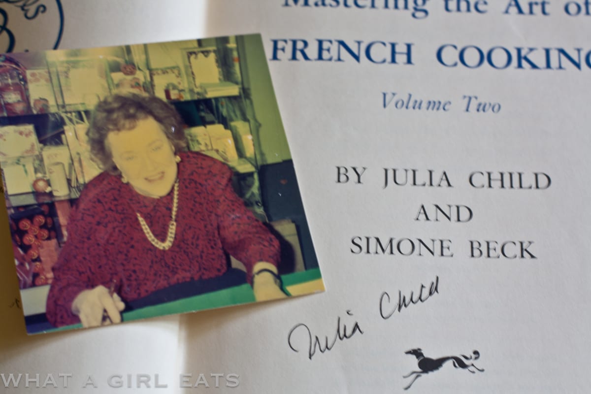 Many years later Julia came back to Pasadena for a book signing. I stood patiently in line with not only her new book, but every cook book I had of hers, including my mom’s first edition Mastering the Art of French Cooking. While she signed, we spoke and I snapped a blurry shot of her while my eyes welled up with tears of joy.