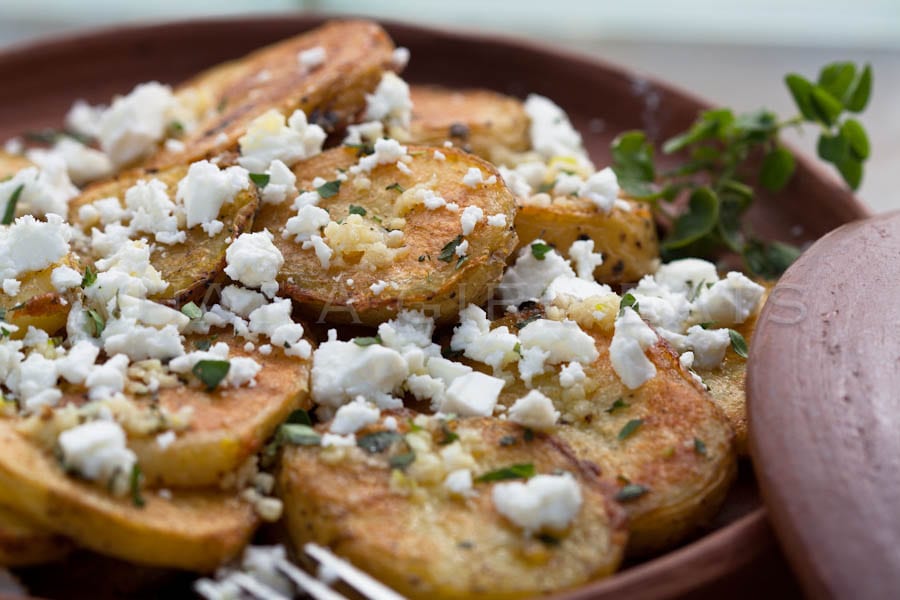My husband requested nachos this weekend, but instead of the traditional Mexican version, I thought it would be fun to try something different.Then I remembered our favorite Greek restaurant and their crazy-delicious Garlic Feta Potatoes, so I thought Greek Nachos with pita chips in place of the tortilla strips would be awesome. For a gluten free version, you can easily use tortilla strips of course.